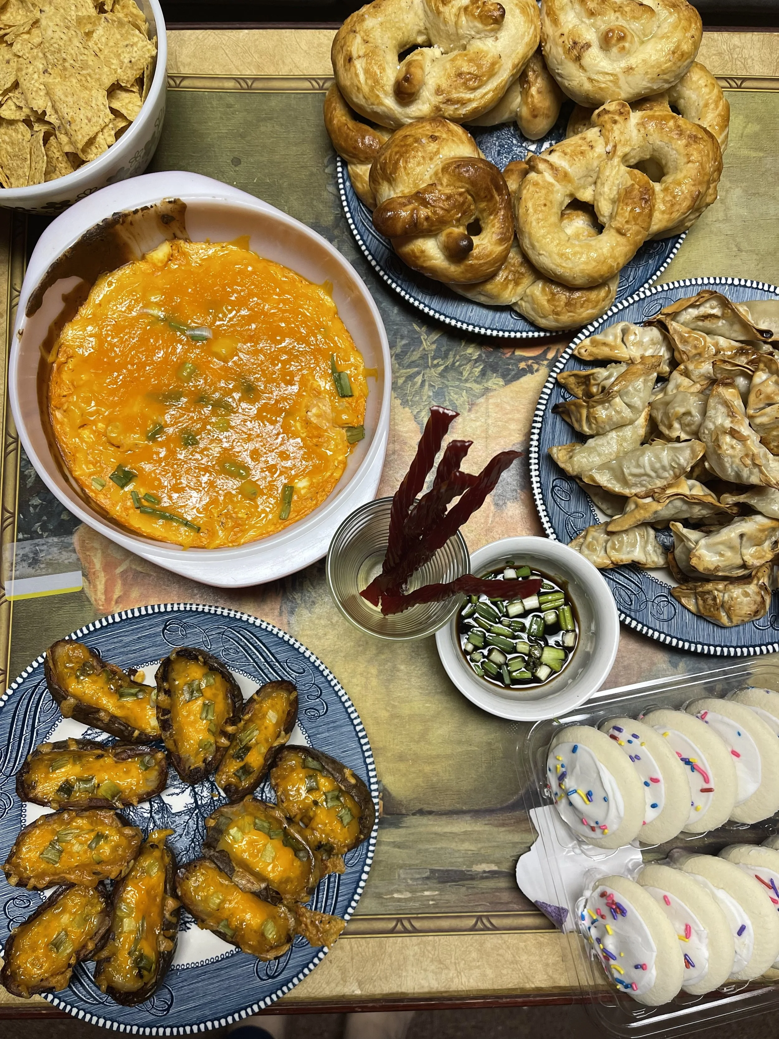 Tonight we made appetizers for the super bowl from things that we had here. It was kind of fun to see what we could whip up with things from the freezer or items in the pantry.