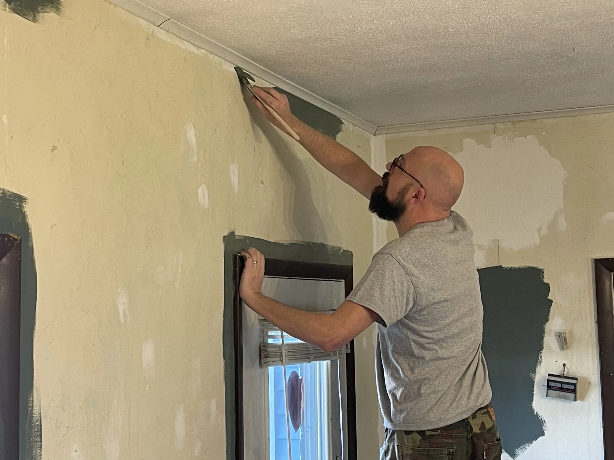 Nick and I finished prepping the schoolroom to be painted and then we were finally able to get started with the painting. It is a dark color and I like it! I was a bit nervous but it is a dreamy green color. I’ll go over it when we have the room tour and reveal which I may some day do.